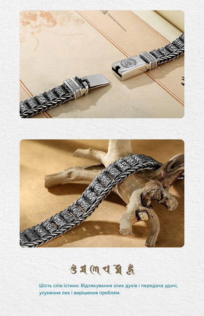 Наш браслет натхненний традицією Тибету молитовного колеса — циліндричного колеса з вигравіруваною мантрою, яке тибетці обертають, щоб збільшити свої «заслуги» або хорошу карму. Обертання коліс цього браслета принесе вам мир та удачу.