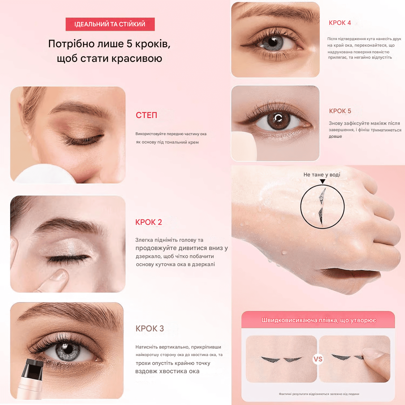 Залишайтеся бездоганними від світанку до сутінків . Наша швидковисихаюча, водостійка формула фіксує насичений колір та зберігає чіткість ліній , незалежно від того, наскільки насиченим є ваш день .
