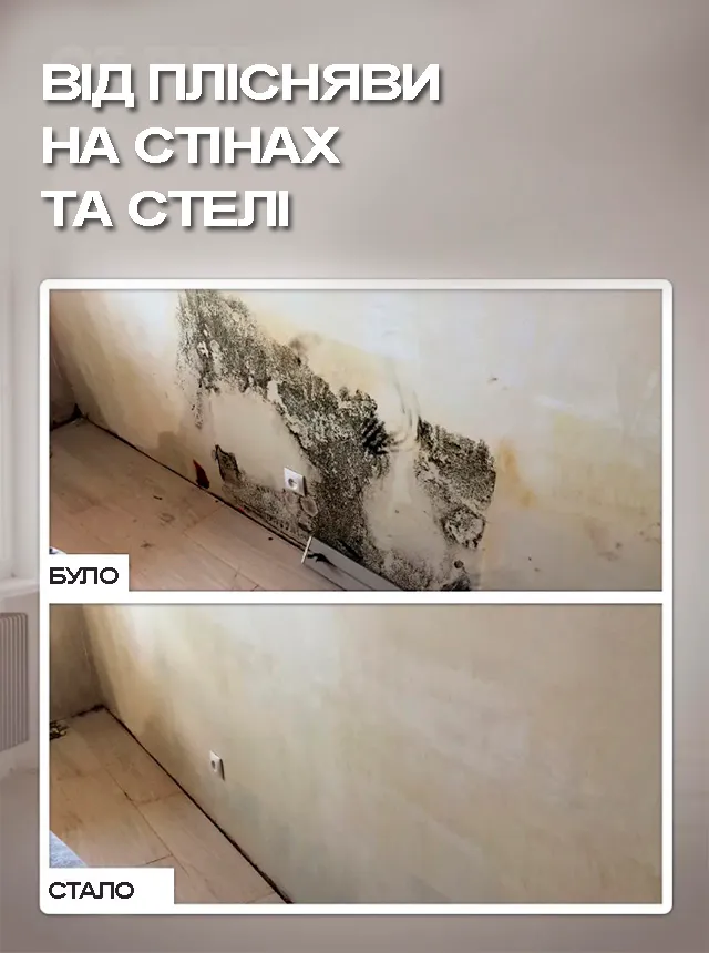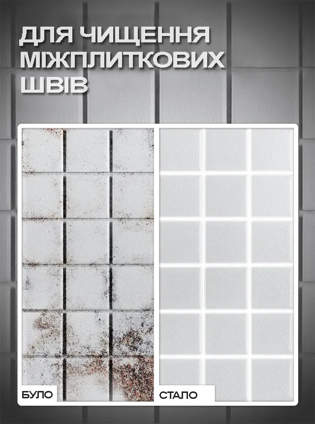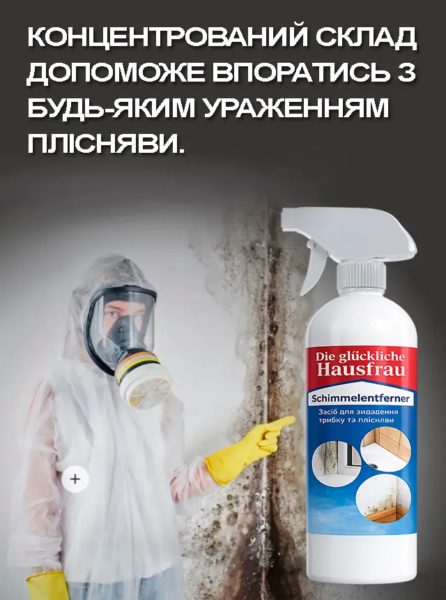 Крім цвілі, очисник видаляє забруднення різного походження, застарілі та засохлі плями. Засіб залишає поверхні не тільки візуально, а й гігієнічно чистими.