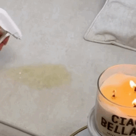 Аерозоль миттєво охолоджує ділянку, зупиняючи проникнення плями вглиб тканини. Активні компоненти розщеплюють забруднення на поверхні — достатньо розпилити, зачекати кілька секунд і витерти серветкою або губкою. Без слідів і запаху.