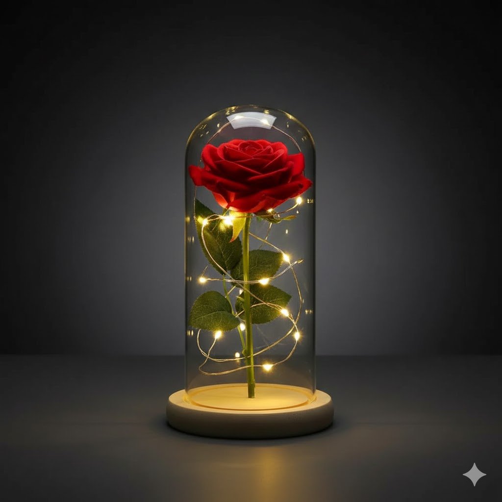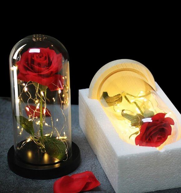 Може використовуватись як нічник. Роза в колбі, що світиться, — ідеальний подарунок для будь-якої представниці прекрасної статі.